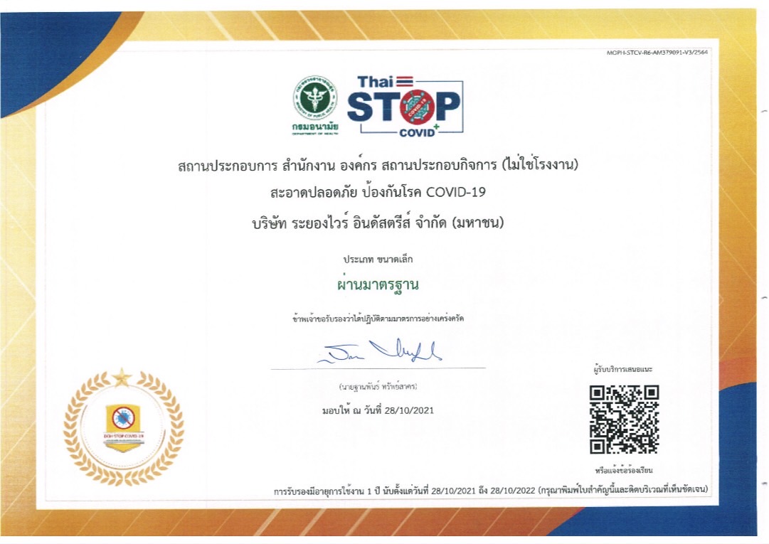 Rayong Wire Industries Public Company Limited has been certified as a member of the Private Sector Collective Action Coalition Against Corruption (CAC) and received the certificate on Friday, October 18, 2019 at the Hyatt Regency Sukhumvit Hotel, Bangkok.